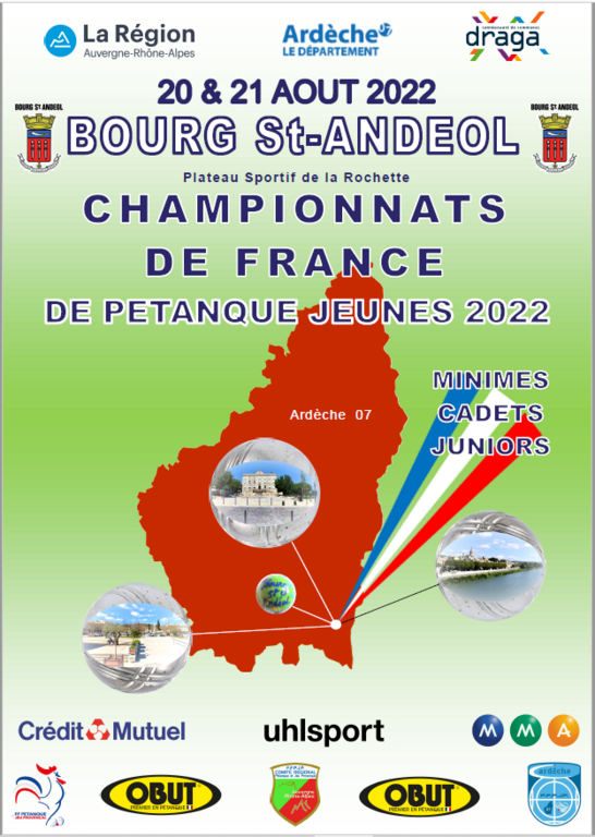 Les 20 & 21 Août 2022 se dérouleront les championnats de France Triplettes Jeunes à BOURG SAINT ANDEOL (07)