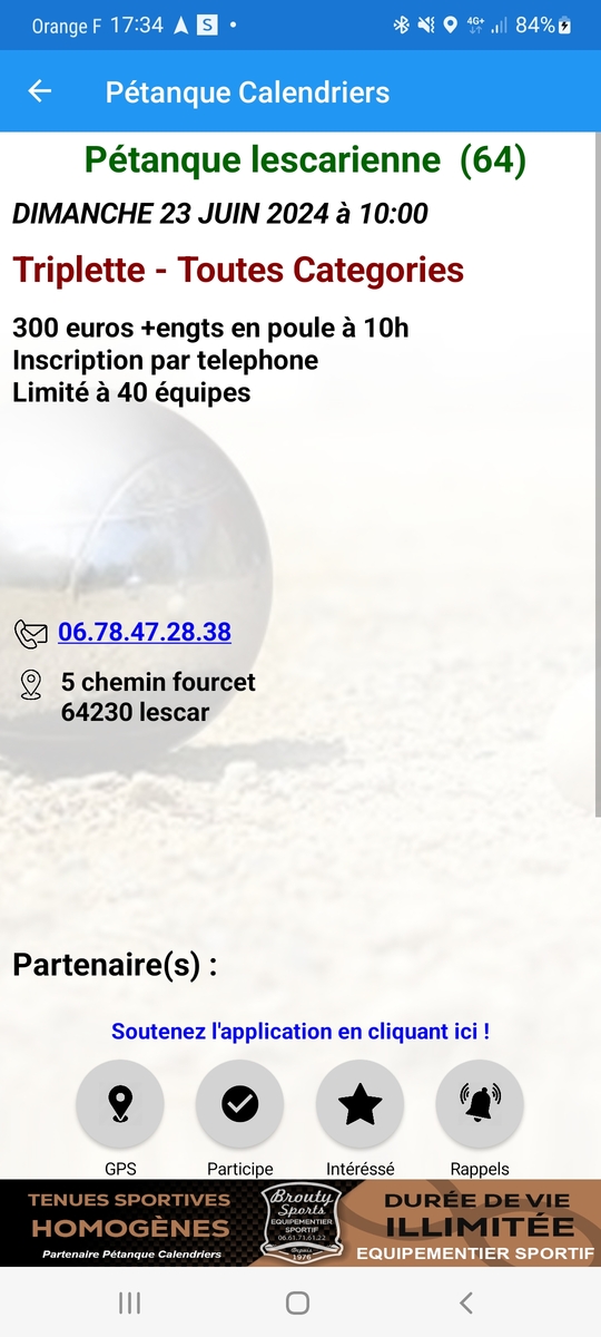 Le club de Lescar organise un concours en Triplette le dimanche 23 Juin 2024 - En poule - à 10H00 - 300€ + Engts - Limité à 40 équipes