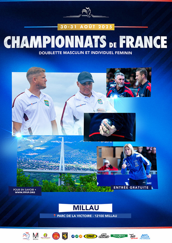 Du 30 & 31 Août 2025 vont se dérouler les Championnats de France Individuel Sénior Féminin, Doublette Sénior Masculin à MILLAU (12)